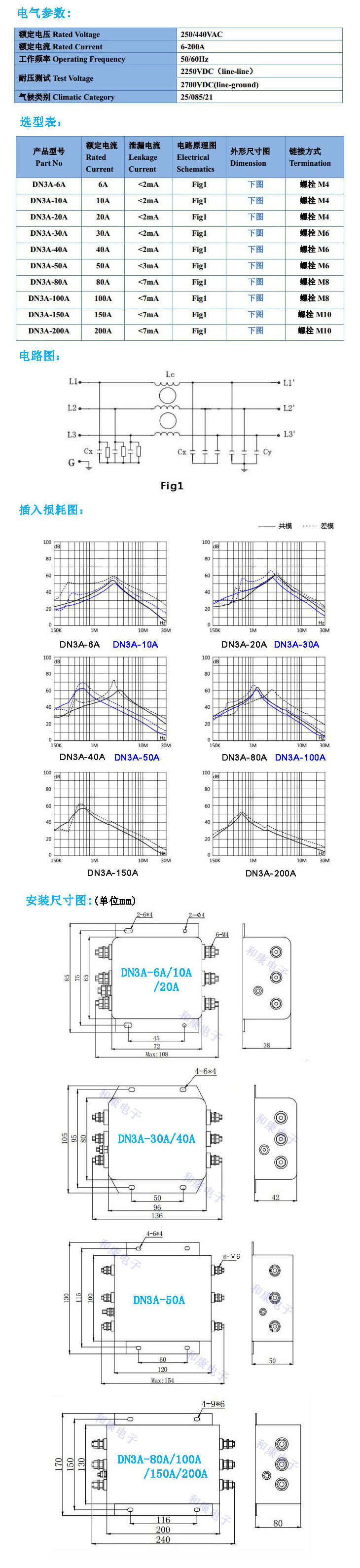 1.交流三相三線電源濾波器,采用品質(zhì)元件;