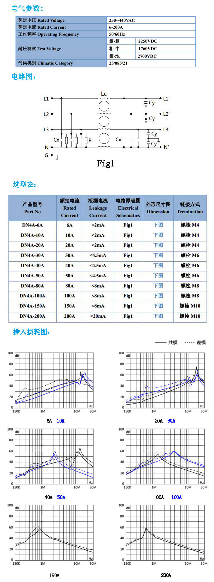 2.額定電流6A~200A可選,濾波范圍:10KHz-30MHz;