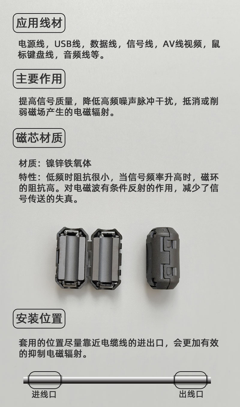 TDK卡扣濾波磁環(huán) 信號線屏蔽器